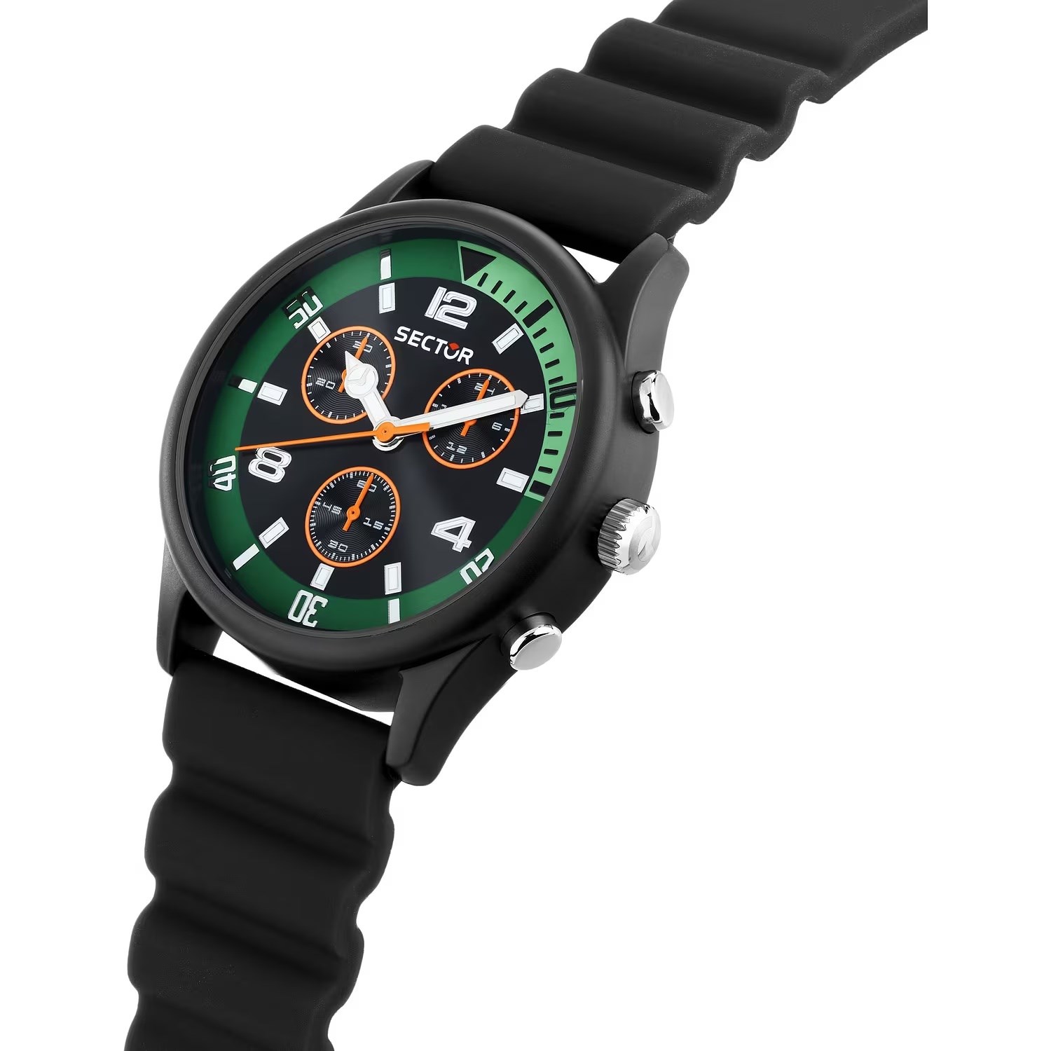 Orologio uomo sector, R3271718002, collezione h20, movimento al quarzo, cronografo, cassa in silicone 43mm, quadrante nero, cinturino in silicone, resistenza all'acqua 10atm