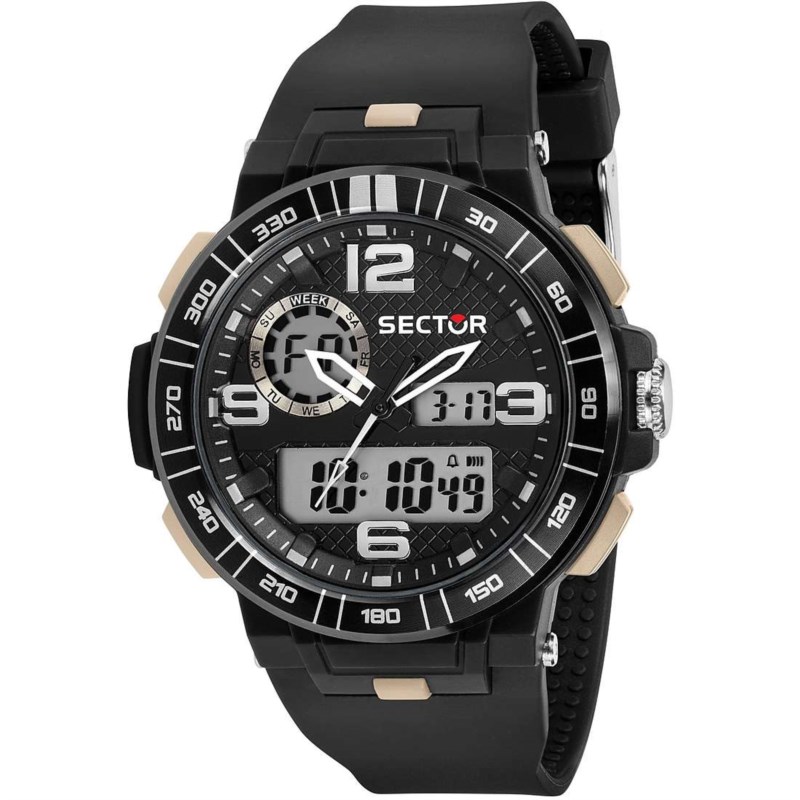 Orologio uomo sector, R3251532003, collezione ex-28, movimento quarzo, digitale/analogico, cassa in plastica nera 46 mm, quadrante nero, cinturino in policarbonato nero, resistenza acqua 5 atm
