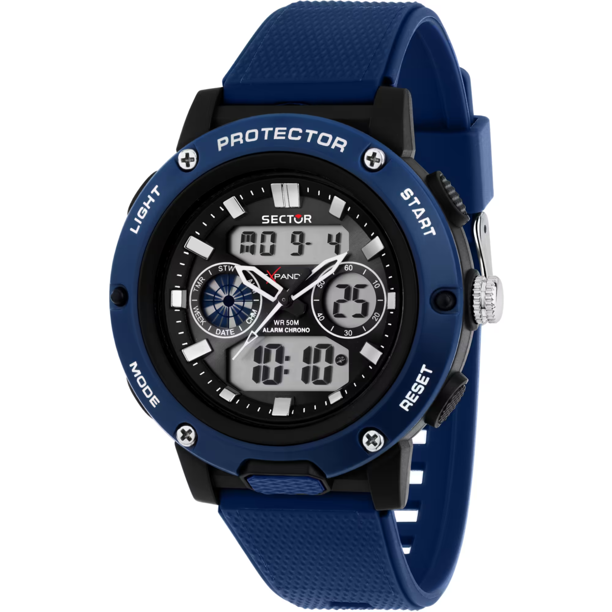 Orologio uomo sector, R3251292003, collezione ex-44, movimento al quarzo, analogico/digitale, cassa in policarbonato 46mm, cinturino in gomma, resistenza all'acqua 5atm