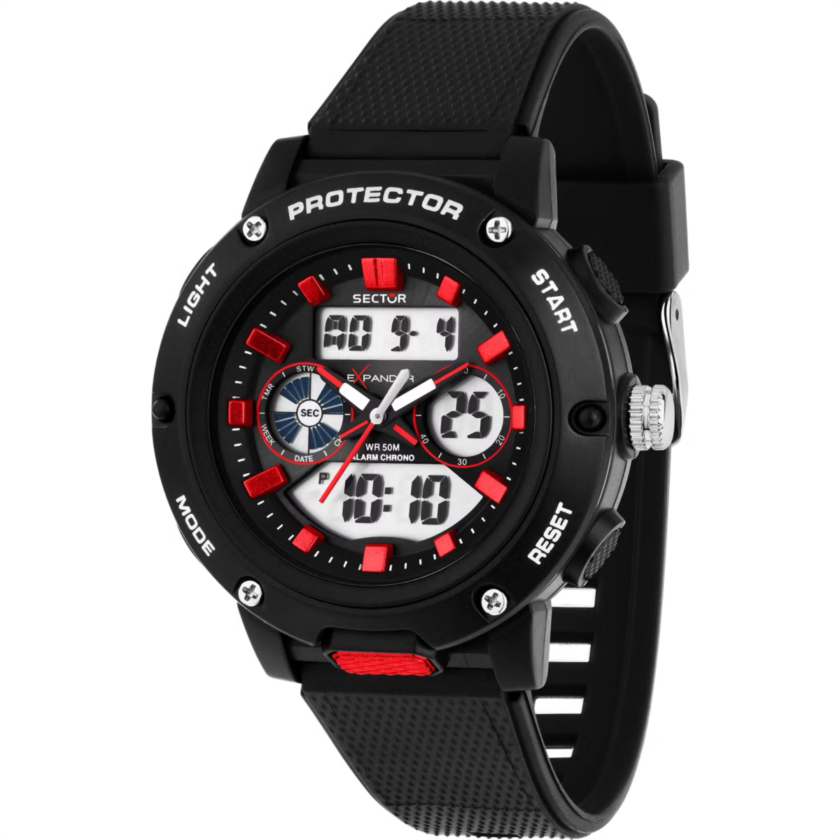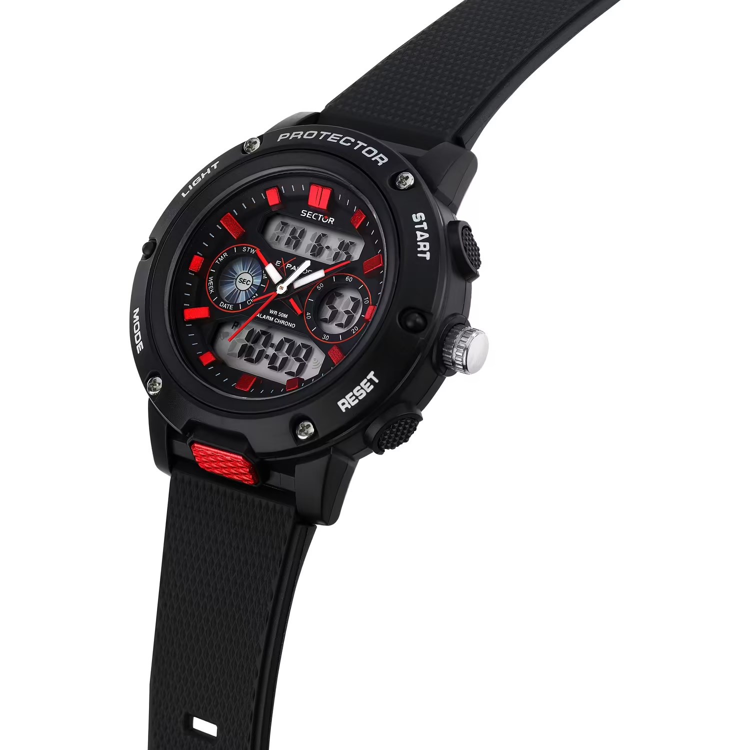Orologio uomo sector, R3251293002, collezione ex-45, movimento al quarzo, analogico/digitale, cassa in policarbonato 42, 5mm, cinturino in gomma, resistenza all'acqua 5atm