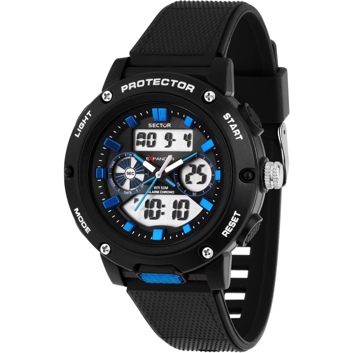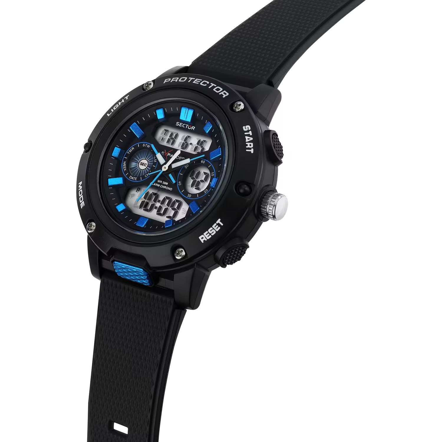 Orologio uomo sector, R3251293003, collezione ex-45, movimento al quarzo, analogico/digitale, cassa in policarbonato 42, 5mm, cinturino in gomma, resistenza all'acqua 5atm