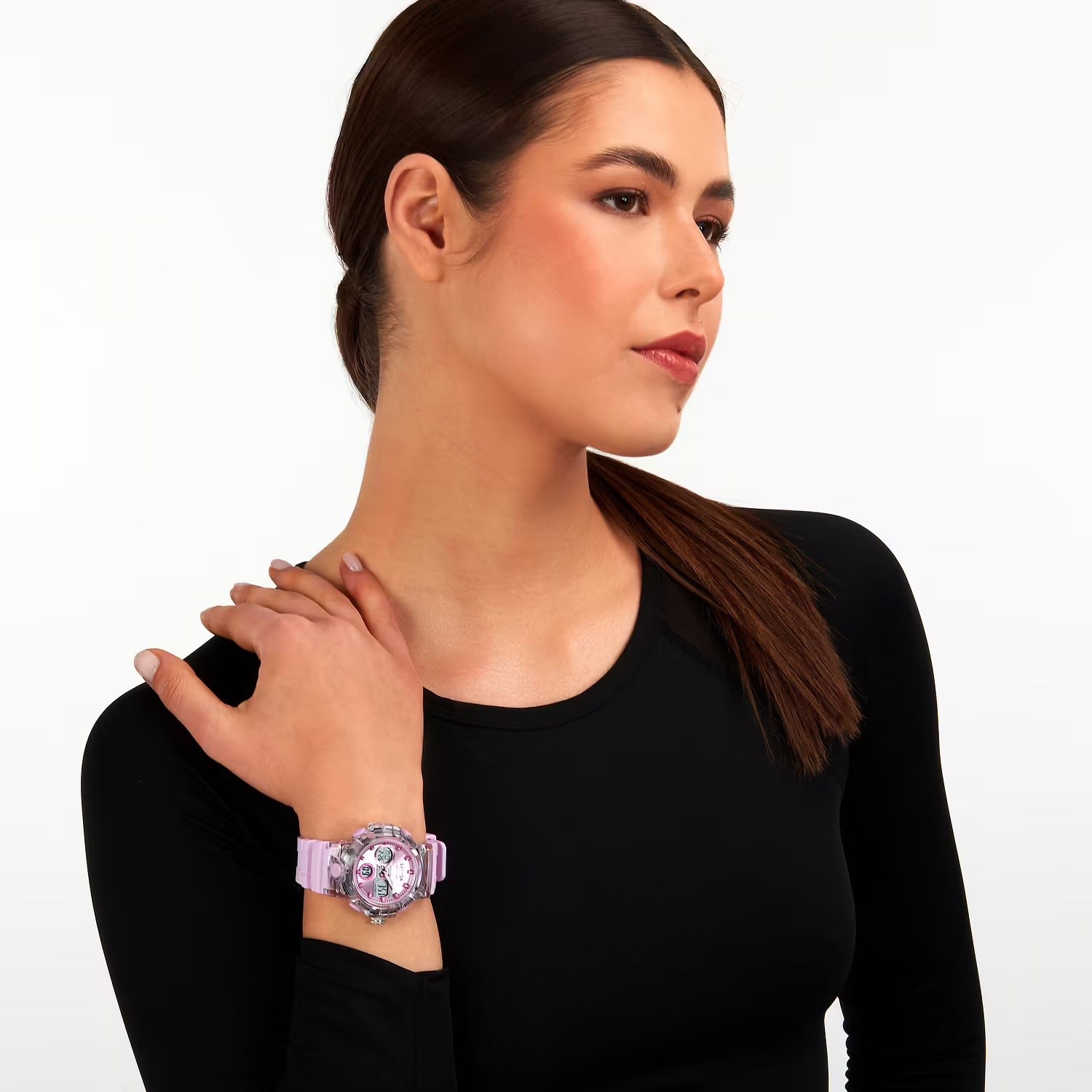 Orologio donna sector, R3251242501, collezione ex-46, movimento al quarzo, analogico/digitale, cassa in policarbonato 42, 5mm, quadrante rosa, cinturino in silicone, resistenza all'acqua 5atm