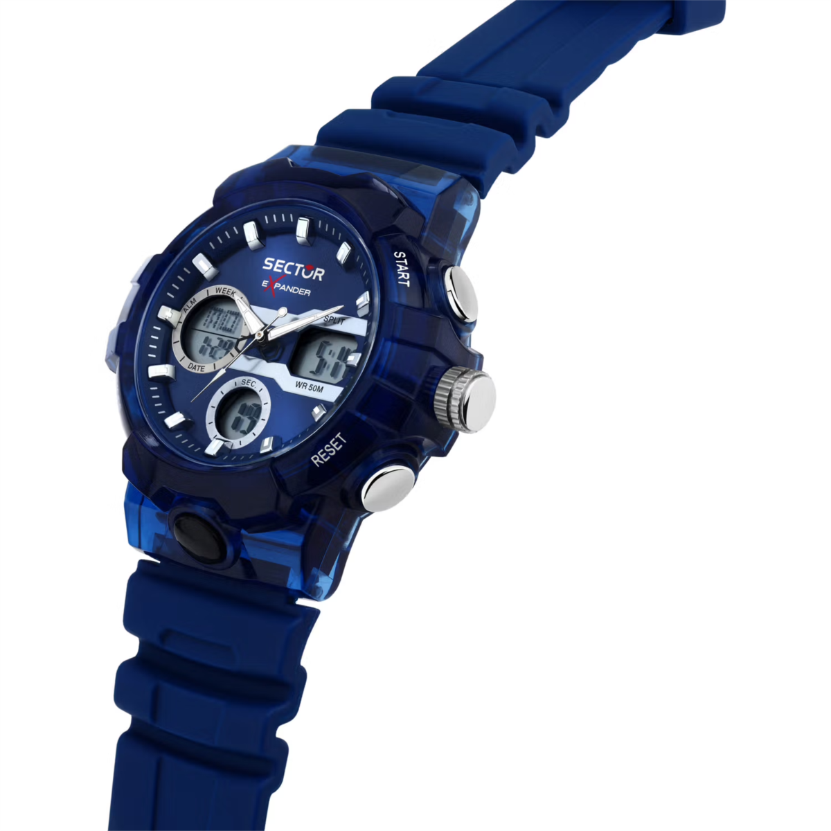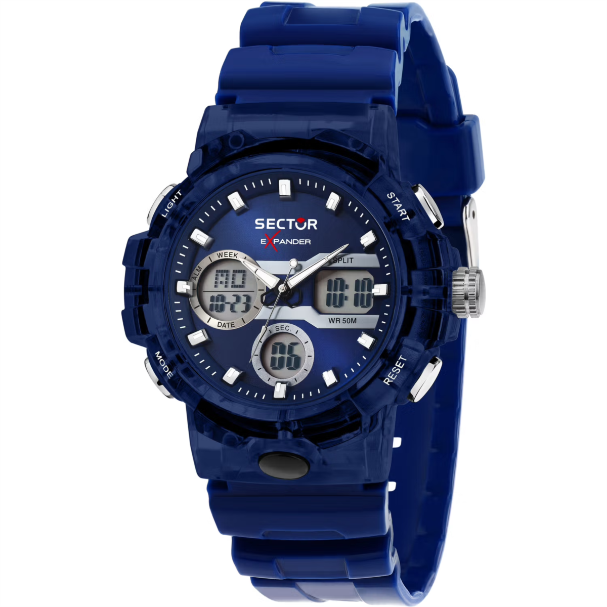 Orologio unisex sector, R3251242506, collezione ex-46, movimento al quarzo, analogico/digitale, cassa in policarbonato 42, 5mm, quadrante blu, cinturino in silicone, resistenza all'acqua 5atm