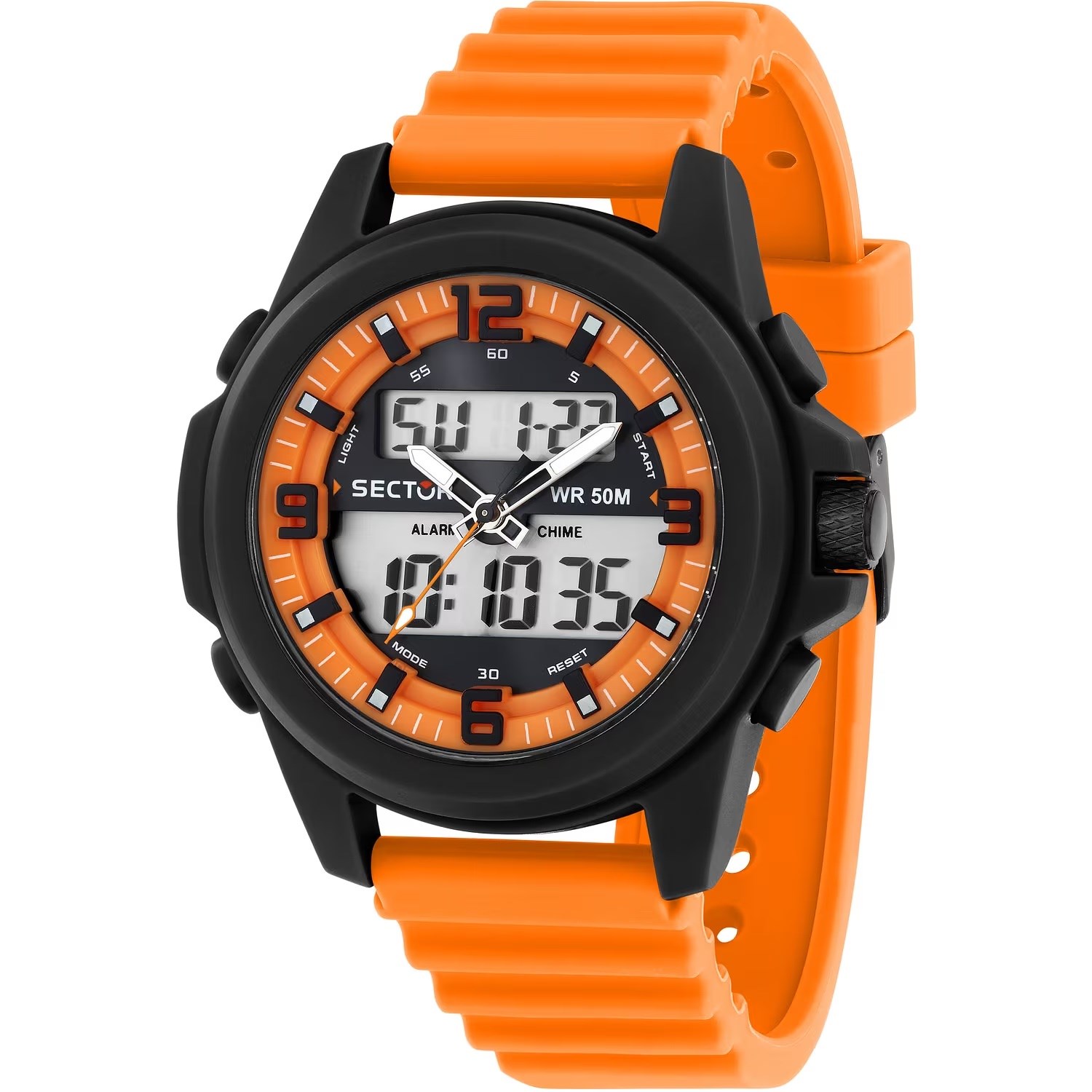 Orologio uomo sector, R3251302002, collezione ex-48, movimento al quarzo, analogico/digitale, cassa in silicone 46mm, cinturino in silicone, resistenza all'acqua 5atm