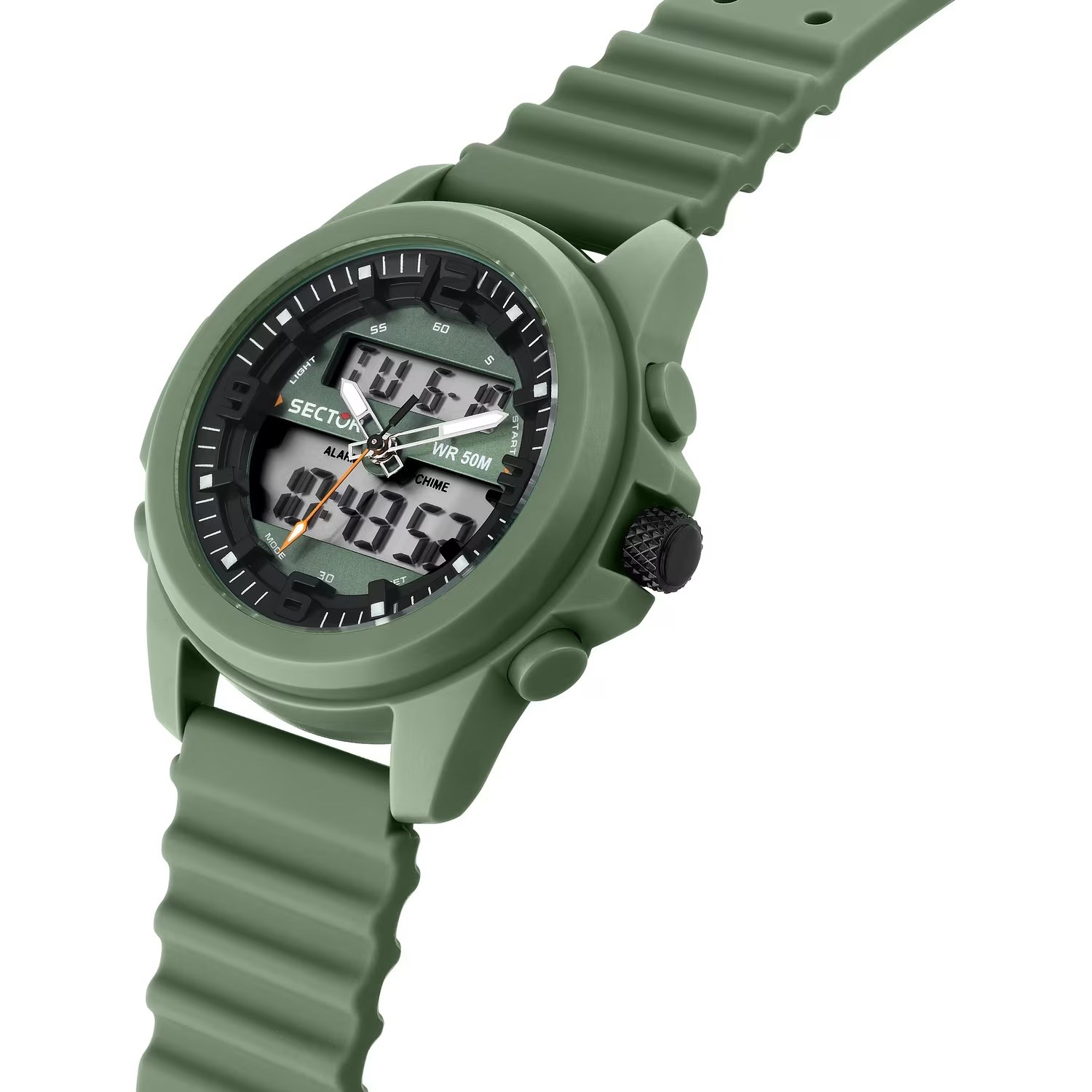 Orologio uomo sector, R3251302004, collezione ex-48, movimento al quarzo, analogico/digitale, cassa in silicone 46mm, cinturino in silicone, resistenza all'acqua 5atm