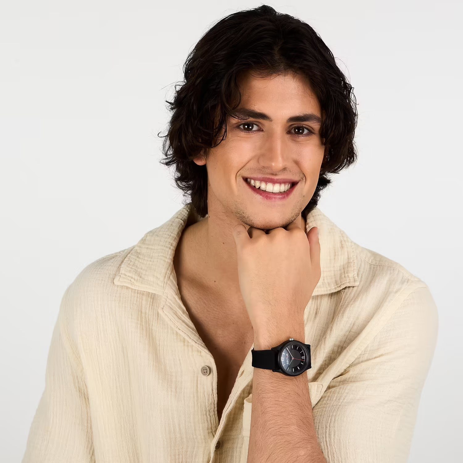 Orologio uomo sector, R3251203002, collezione ex-q, movimento al quarzo, solo tempo, cassa in silicone 41mm, quadrante nero, cinturino in silicone, resistenza all'acqua 5atm