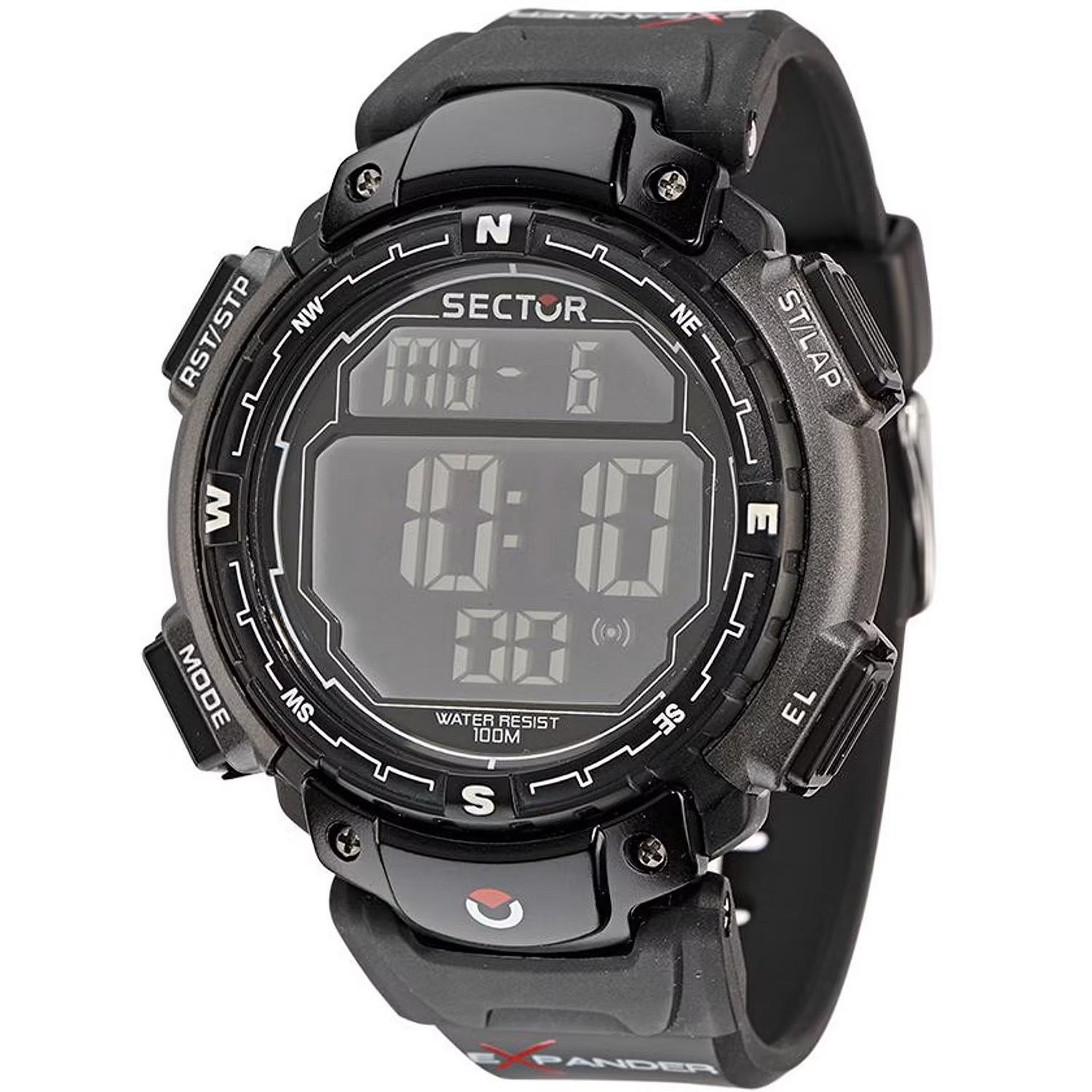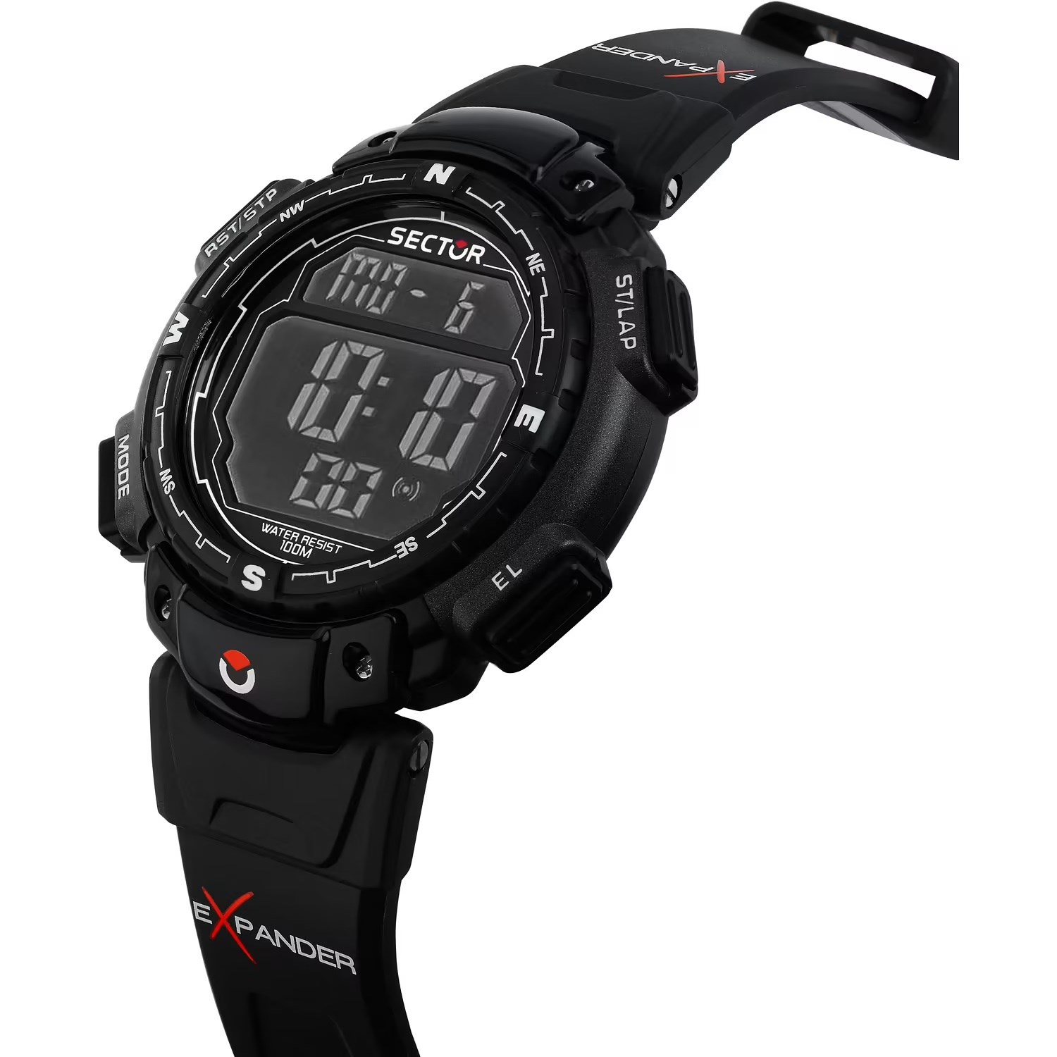 Orologio sector Movimento quarzo digitale Funzione allarme, calendario, conto alla rovescia, cronografo, dual time, retroilluminazione Materiale Cassa gomma/acciaio Colore Cassa nero Finitura Cassa logato Materiale Cinturino gomma Colore Cinturino nero Colore Quadrante grigio scuro ImpermeabilitA 100 m