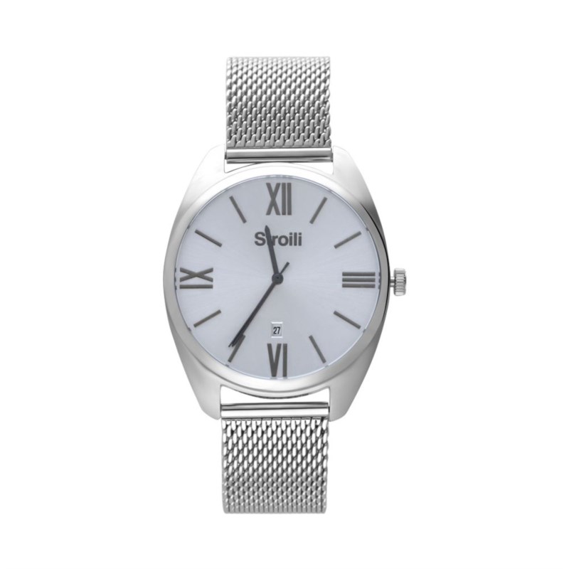 Orologio uomo stroili, 1663582, collezione monaco, movimento al quarzo, solo tempo, cassa in acciaio 42mm, quadrante bianco con datario, cinturino in maglia milano, resistenza all'acqua 5atm
