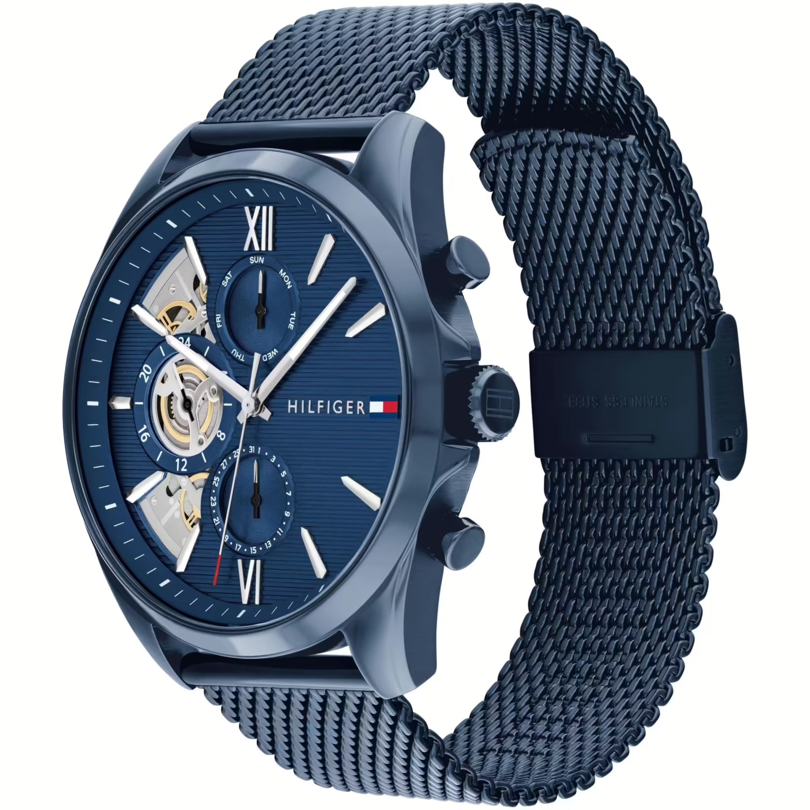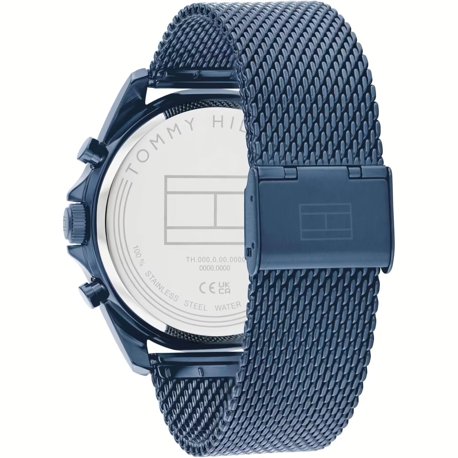 Orologio uomo tommy hilfiger, 1710648, collezione baker, movimento al quarzo, multifunzione, cassa in acciaio 44mm, quadrante blu, cinturino in maglia mesh, resistenza all'acqua 5atm