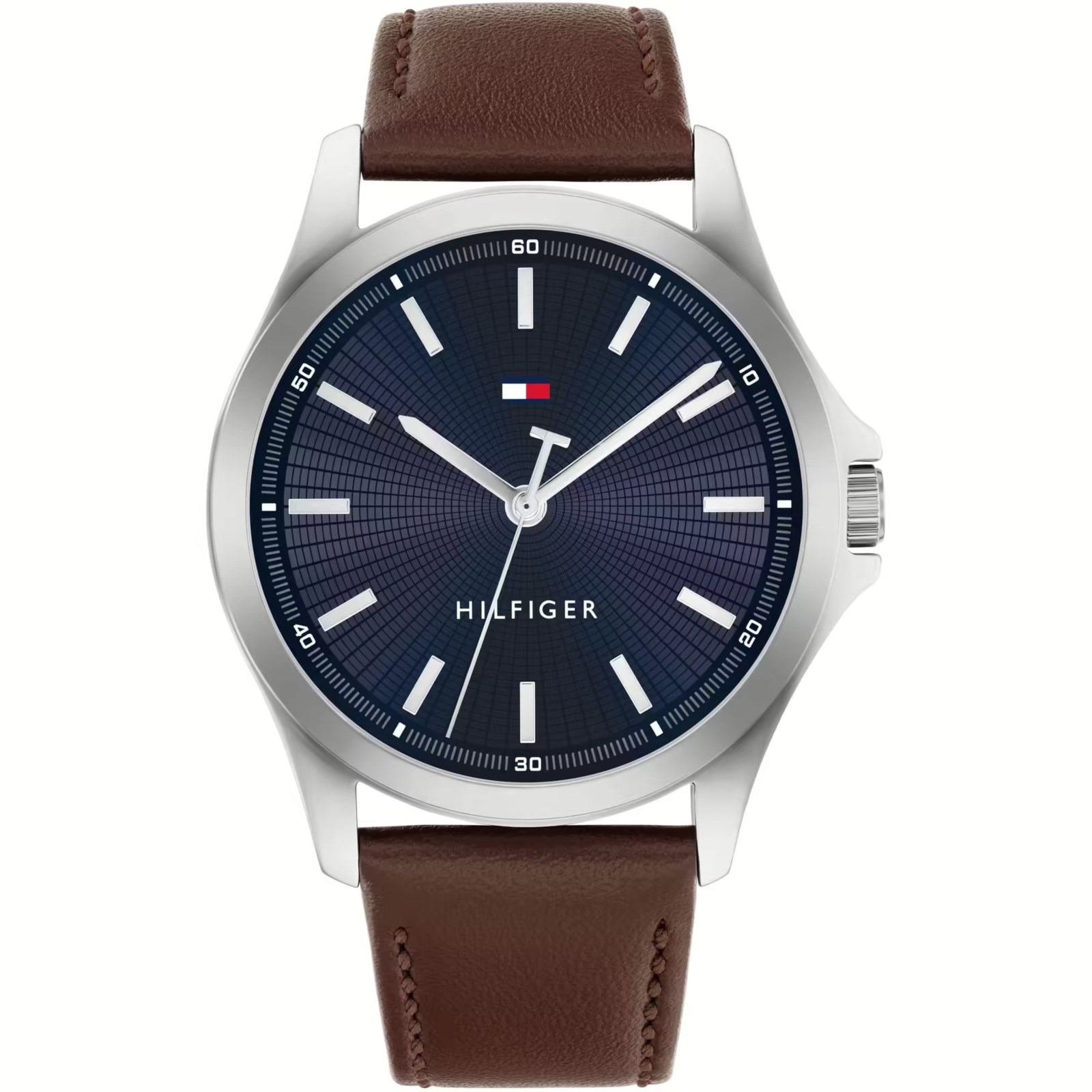 Orologio uomo tommy hilfiger, 1710669, collezione bruce, movimento al quarzo, solo tempo, cassa in acciaio 43mm, quadrante blu, cinturino in pelle marrone, resistenza all'acqua 3atm