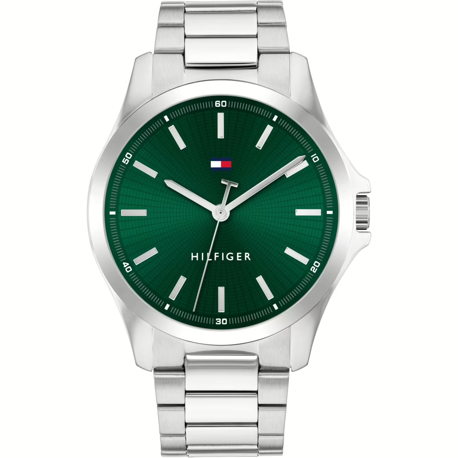 Orologio uomo tommy hilfiger, 1710672, collezione bruce, movimento al quarzo, solo tempo, cassa in acciaio 43mm, quadrante verde, bracciale in acciaio, resistenza all'acqua 3atm