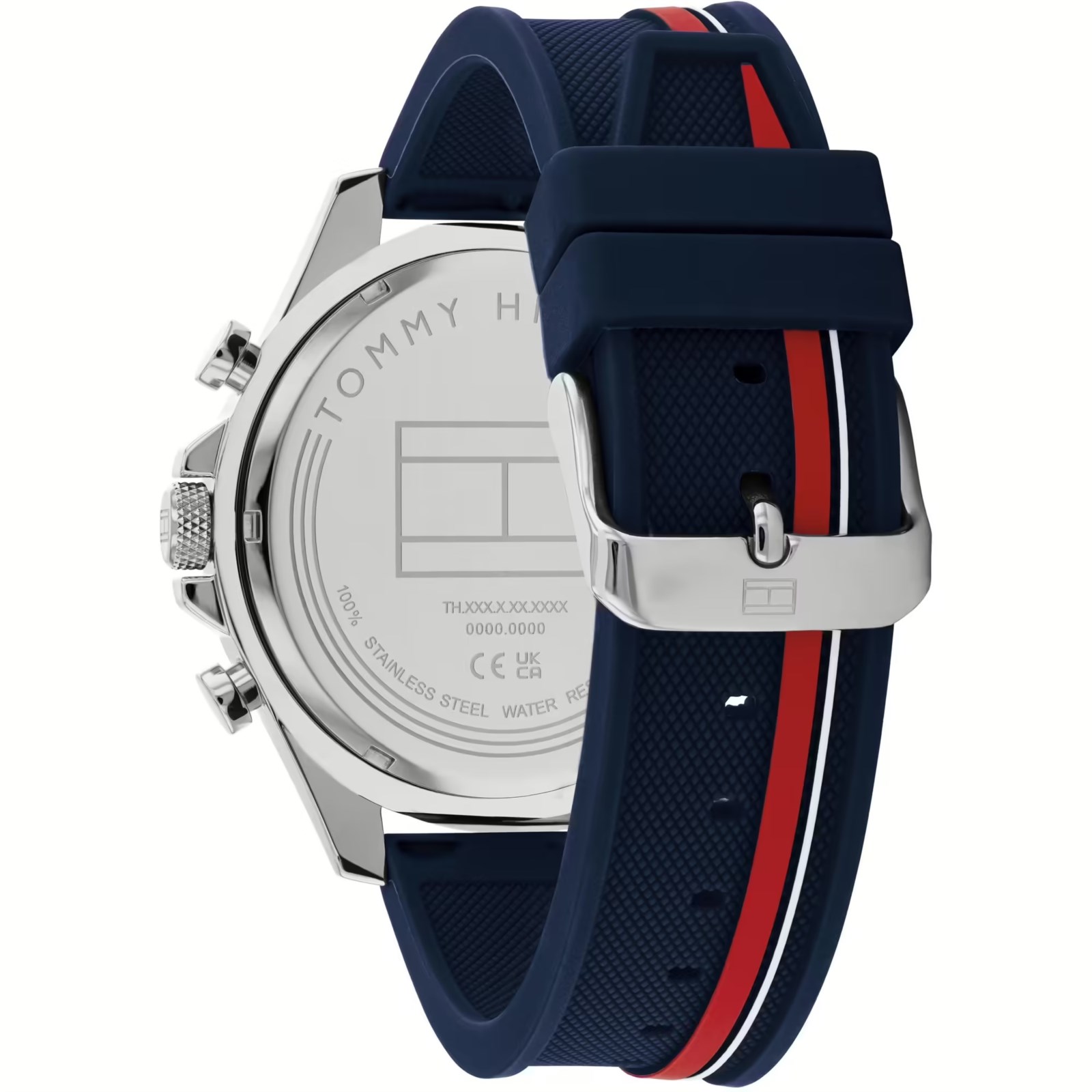 Orologio uomo tommy hilfiger, 1792083, collezione clark, movimento al quarzo, multifunzione, cassa in acciaio 46mm, quadrante blu, cinturino in silicone, resistenza all'acqua 5atm