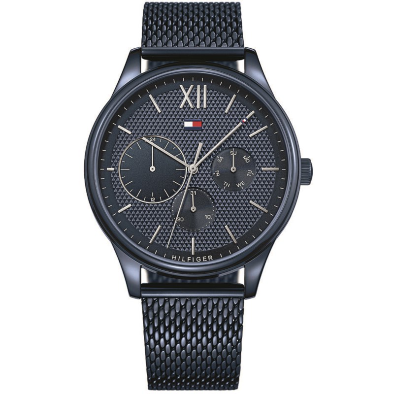 Orologio uomo tommy hilfiger, 1791421, collezione damon, movimento al quarzo, multifunzione, cassa in acciaio blu 44mm, quadrante blu, cinturino in maglia milano, resistenza all'acqua 5atm