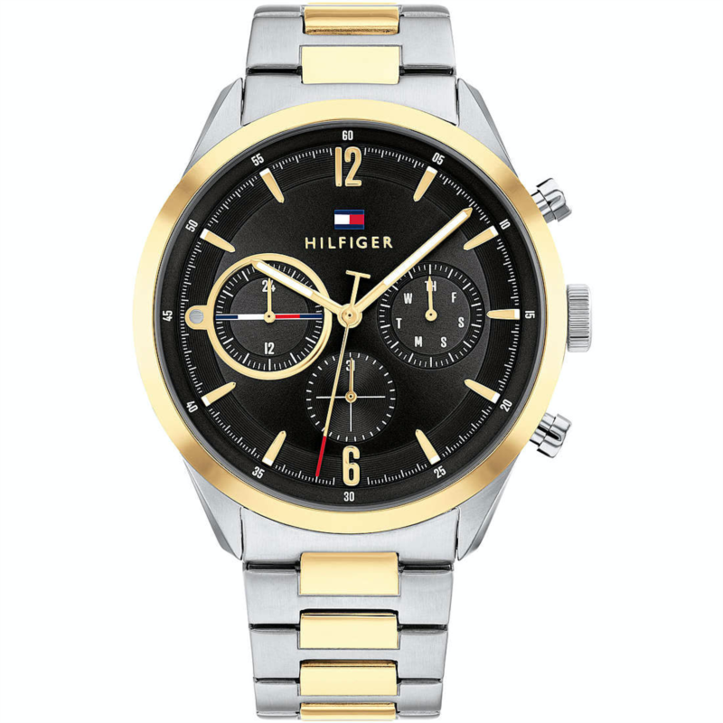Orologio uomo tommy hilfger, 1791944, collezione matthew, movimento al quarzo, multifunzione, cassa in acciaio dorato 44mm, quadrante nero, bracciale in acciaio/acciaio dorato, resistenza all'acqua 5atm