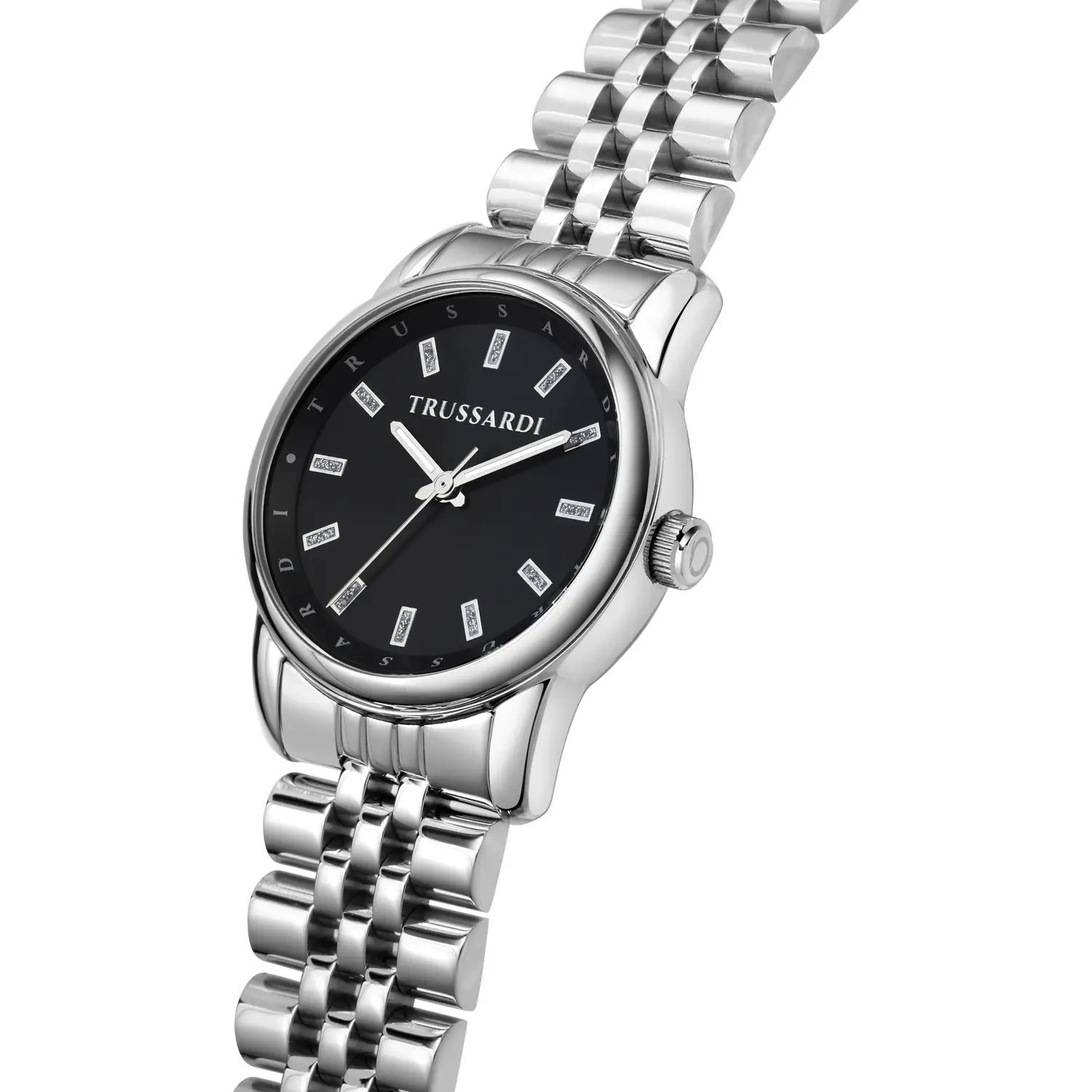 Orologio donna trussardi, R2453150508, collezione t-joy, movimento al quarzo, solo tempo, cassa in acciaio 30mm, quadrante nero, bracciale in acciaio, resistenza all'acqua 5atm