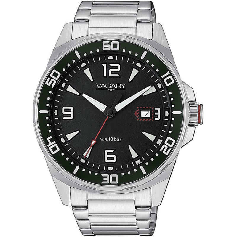 Orologio uomo vagary, Ib8-810-51, collezione aqua39, movimento al quarzo, solo tempo, cassa in acciaio 42, 5mm, quadrante nero con datario, bracciale in acciaio, resistenza all'acqua 10atm