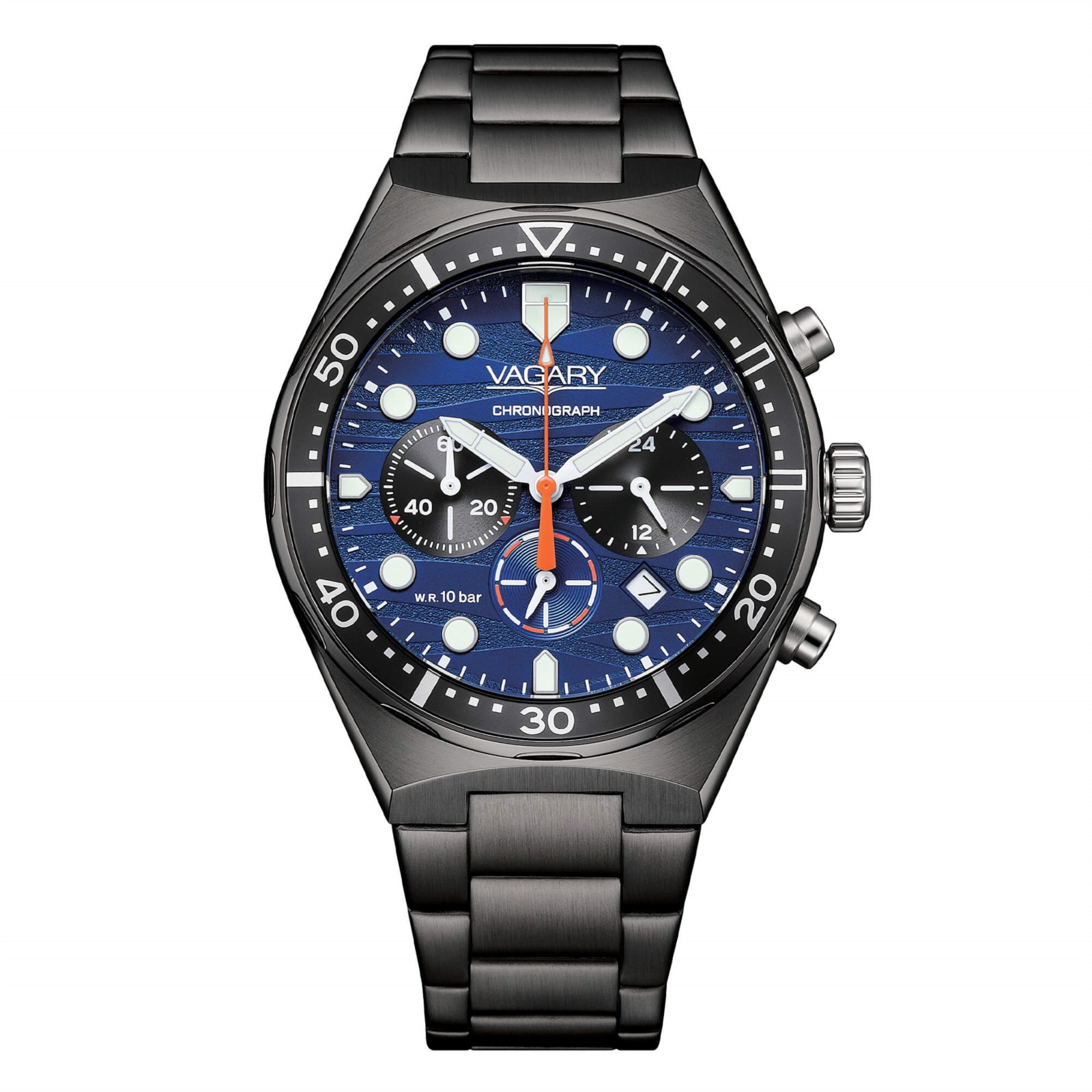 Orologio uomo vagary, IV2-206-71, collezione aqua39, movimento al quarzo, cronografo, cassa in acciaio 40mm, quadrante blu con datario, vetro minerale, bracciale in acciaio, resistenza all'acqua 10 bar