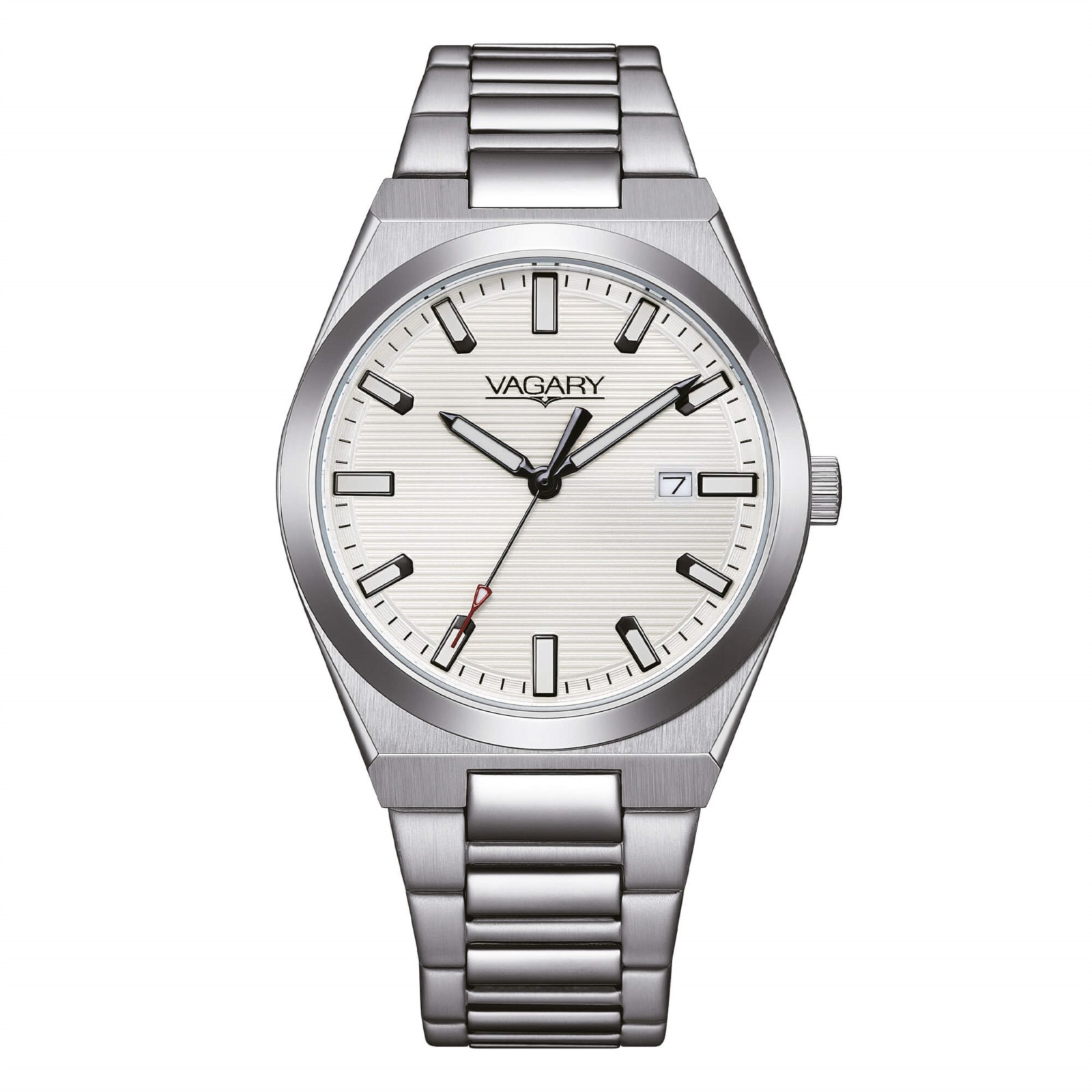 Orologio uomo vagary, IB9-719-11, collezione timeless, movimento al quarzo, solo tempo, cassa in acciaio 37mm, quadrante bianco con datario, bracciale in acciaio, resistenza all'acqua 5 bar