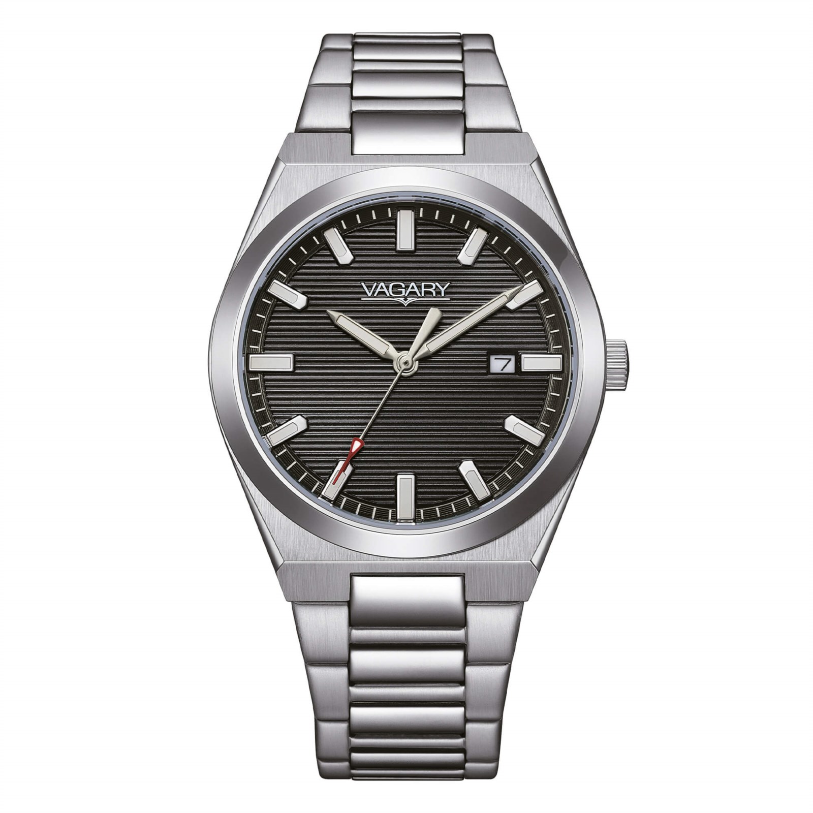 Orologio uomo vagary, IB9-719-51, collezione timeless, movimento al quarzo, solo tempo, cassa in acciaio 37mm, quadrante nero con datario, bracciale in acciaio, resistenza all'acqua 5 bar
