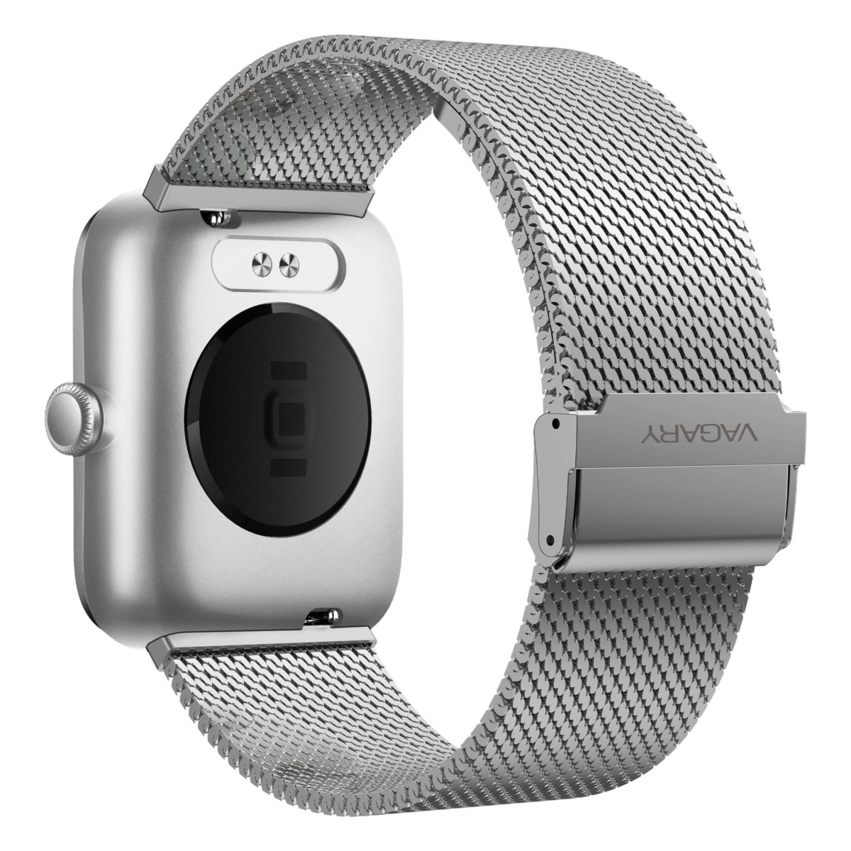 Orologio unisex vagary, X02A-006VY, collezione smartwatch x02a, cassa in plastica 34mm, quadrante 1, 5 pollici TFT-LCD, completamente touch screen, cinturino in maglia milano, resistenza all'acqua 3 bar, compatibilità Android 6.0 o superiore/iOS 9.0 o superiore, connettività bluetooth 5.1 funzioni: Battito Cardiaco, Frequenza Cardiaca, Sonno, Saturazione Ossigeno nel Sangue, Livello di Stress, Ciclo Mestruale e Consumo Calorie. con 20 Modalità Sportive Predefinite, come Corsa, Ciclismo, Nuoto, Escursionismo e Yoga. Orologio con GPS integrato, per tracciare i percorsi. Chiamata, Meteo, Musica, Esercizi di Respirazione, Cronometro, Timer, Allarme, Trova Smartphone, Ricezione Notifiche e Messaggi.