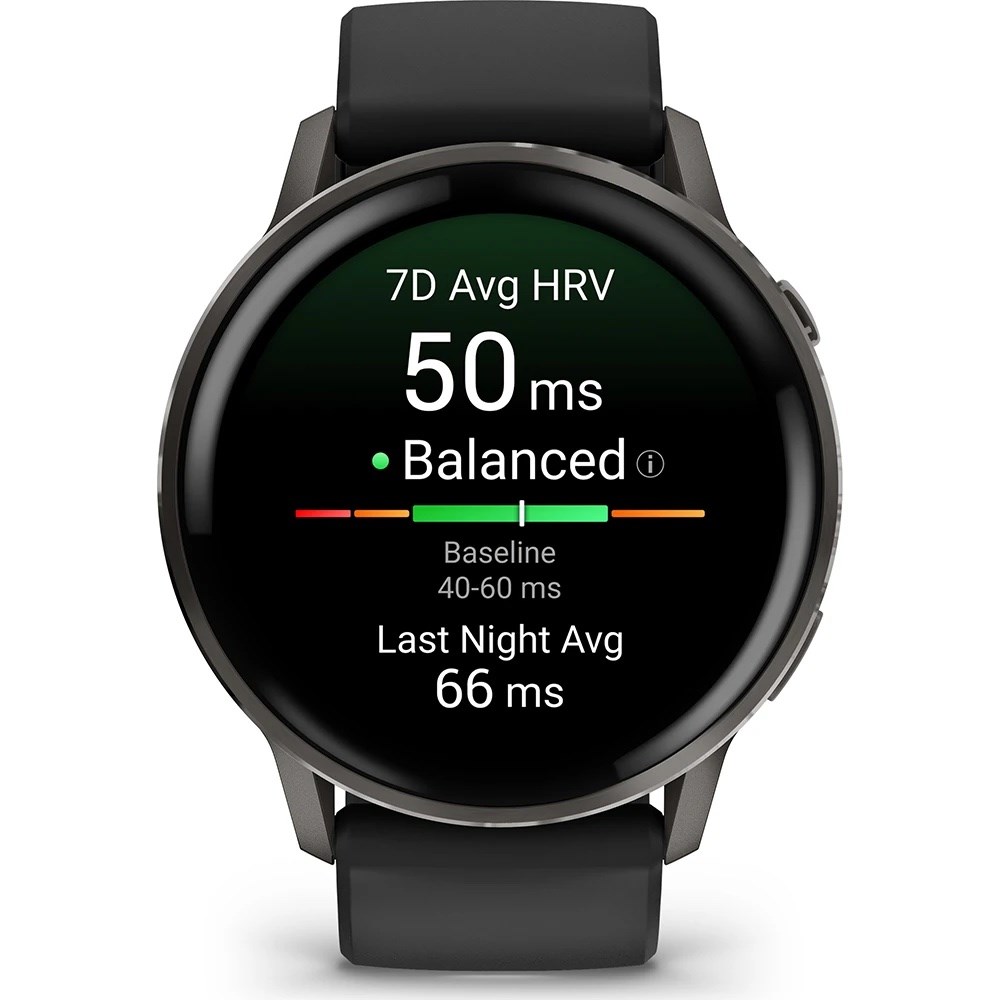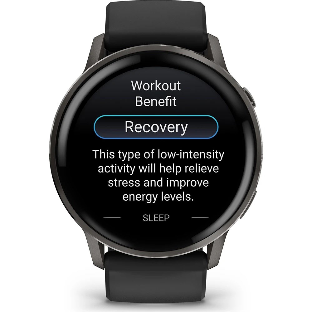 Smartwatch garmin uomo, 010-03014-00, collezione Venu 4, display amoled, durata della batteria in modalità smartwatch 12 giorni (4 giorni con schermo sempre acceso), effettua chiamate e invia messaggi tramite voce, 5 atm, cinturino in silicone, vetro croning gorilla glass 3, lunetta in acciaio, cassa 45mm in acciaio e fiber-reinforced-polymer, peso 38g, Salute e Benessere Monitoraggio 24/7 di energia (Body Battery™), stress, frequenza cardiaca, HRV, ossigenazione (Pulse Ox), temperatura cutanea e salute femminile. Sonno avanzato: punteggio e suggerimenti personalizzati, analisi delle fasi e coerenza con il ritmo circadiano. Health Snapshot: in 2 minuti registra dati chiave (frequenza cardiaca, respirazione, HRV, ecc.) per un report medico. Stato di salute (Beta): rileva variazioni anomale delle metriche rispetto ai tuoi standard. Morning/Evening Report: riepilogo giornaliero su sonno, recupero, meteo e impegni. Meditazione e Jet Lag: sessioni guidate per ridurre stress e ottimizzare il ritmo sonno-veglia. Fitness e Allenamento Oltre 80 profili sport indoor/outdoor (corsa, ciclismo, forza, yoga, golf, triathlon, ecc.). Allenamenti personalizzati: Garmin Coach, piani di forza funzionale, HIIT e video workout sul display. Training Readiness e Recovery: valutano quanto sei pronto ad allenarti e quanto recupero serve. Potenza e dinamiche di corsa: misurano cadenza, falcata, contatto col suolo e sforzo. GPS multi-band SatIQ™: massima precisione e durata batteria ottimizzata. Età fitness: stima la tua forma fisica rispetto all’età reale. Modalità sedia a rotelle e multi-attività per sessioni combinate. Connettività e Funzioni Smart Telefonate e messaggi dal polso (anche con tastiera su Android). Notifiche smart e visualizzazione foto (Android). Musica offline da Spotify, Deezer o Amazon Music. Pagamenti contactless Garmin Pay™. Sicurezza: rilevamento incidenti e invio posizione in tempo reale. Google Maps™ integrato per indicazioni curva per curva. Garmin Connect per analisi dati, sfide e condivisione. Personalizzazione e Praticità Quadranti, colori e caratteri personalizzabili. Modalità focus, torcia LED, timer, cronometro e calendario sincronizzato. Filtro blu e variazione colore per ridurre l’affaticamento visivo.