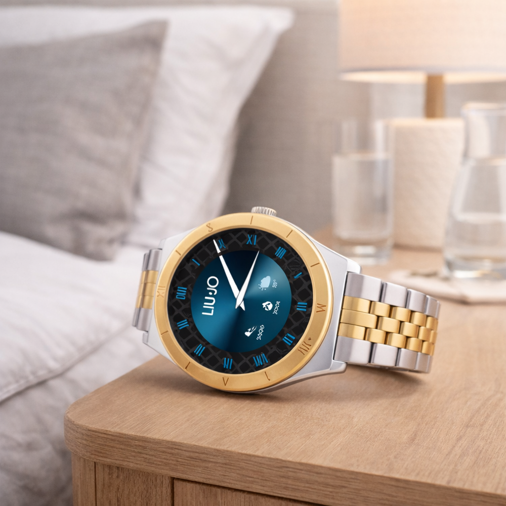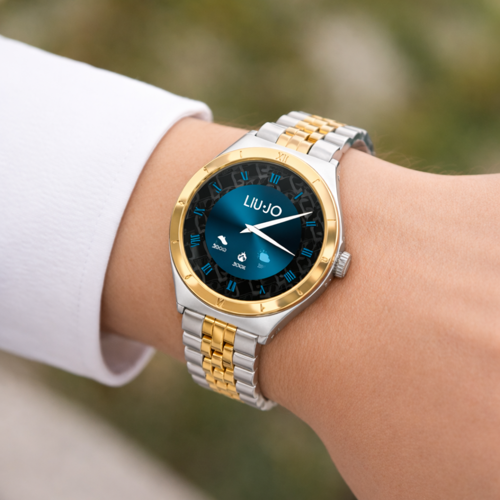 Smartwatch donna liujo, SWLJ176, collezione voice classic, cassa in metallo 39mm, display completamente touch, pollici 1.19, bracciale in acciaio. Funzioni: chiamata vocale tramite dispositivo ed avviso di notifica, assistente vocale, sport, pedometro, calorie, controllo del sonno, avviso sedentarietà, cronometro, timer, accensione dello schermo con movimento del polso, frequenza cardiaca, pressione sanguigna, ossigenazione, controllo della musica da remoto, scatto, meteo, sveglia, sfondo personalizzabile, trova telefono, monitoraggio ciclo mestruale