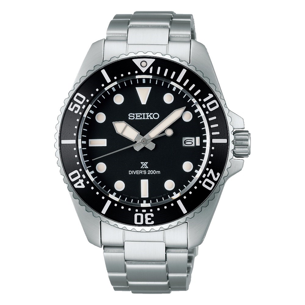Orologio uomo seiko, SNE597P1, collezione prospex, movimento solare, solo tempo, cassa in acciaio inossidabile 41mm, quadrante nero con datario, lumibrite, vetro zaffiro, lunetta girevole, corona a vite, bracciale in acciaio inossidabile, resistenza all'acqua 20 bar calibro v157